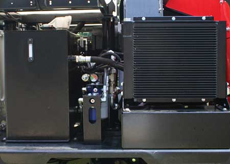 - Hydraulically operated rear tailgate mechanism is faster and easier to open, close and lock, improving debris dumping efficiency